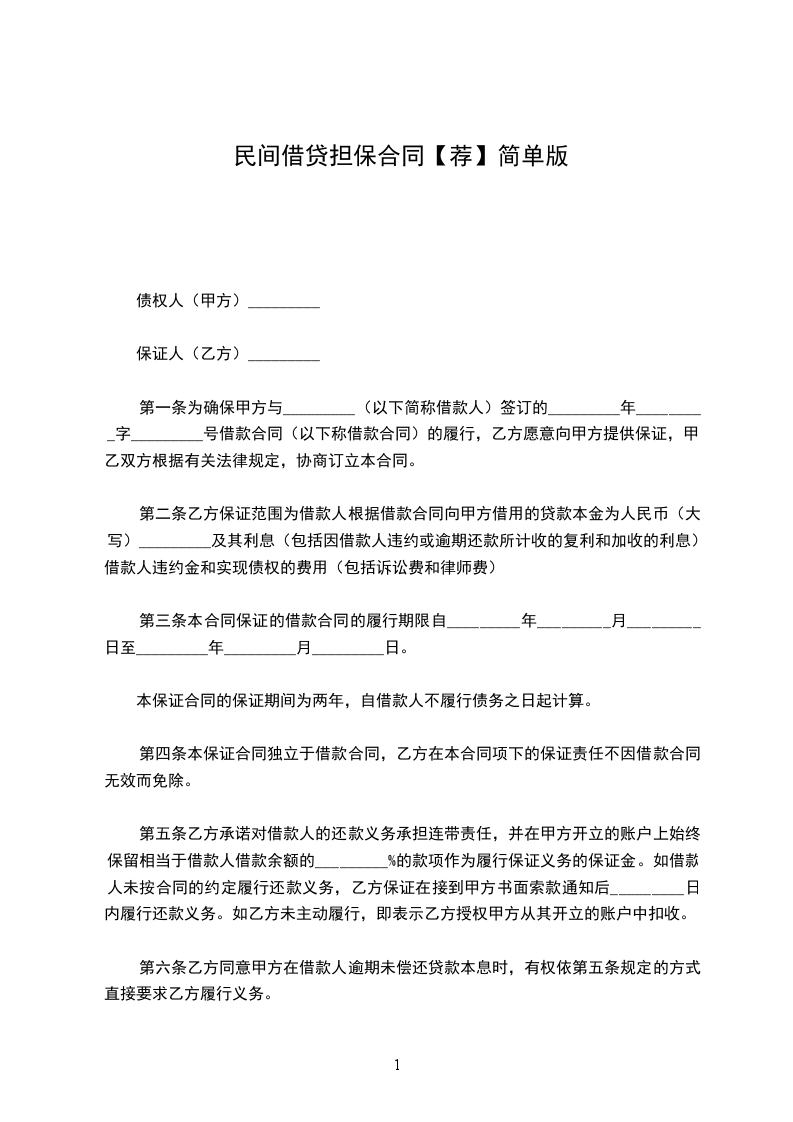 1.4保证担保方式:向甲方提供担保。