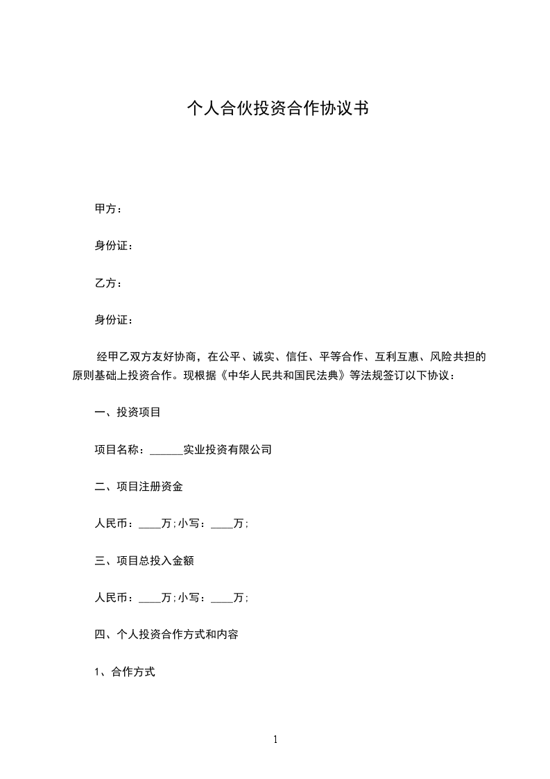 经甲乙双方友好协商,在公平、诚实、信任、平等合作、互利互惠、风险共担的原则基础上投资合作。现根据《中华人民共和国民法典》等法规签订以下协议: