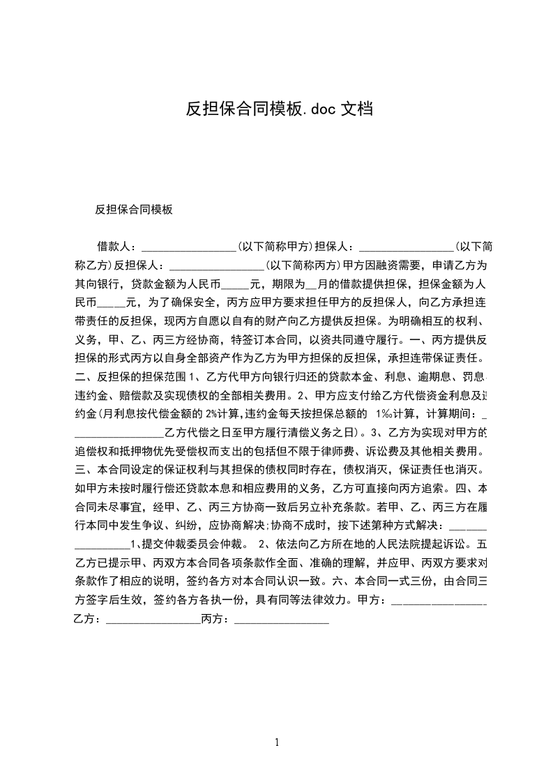 1、乙方的保证反担保为连带责任保证。