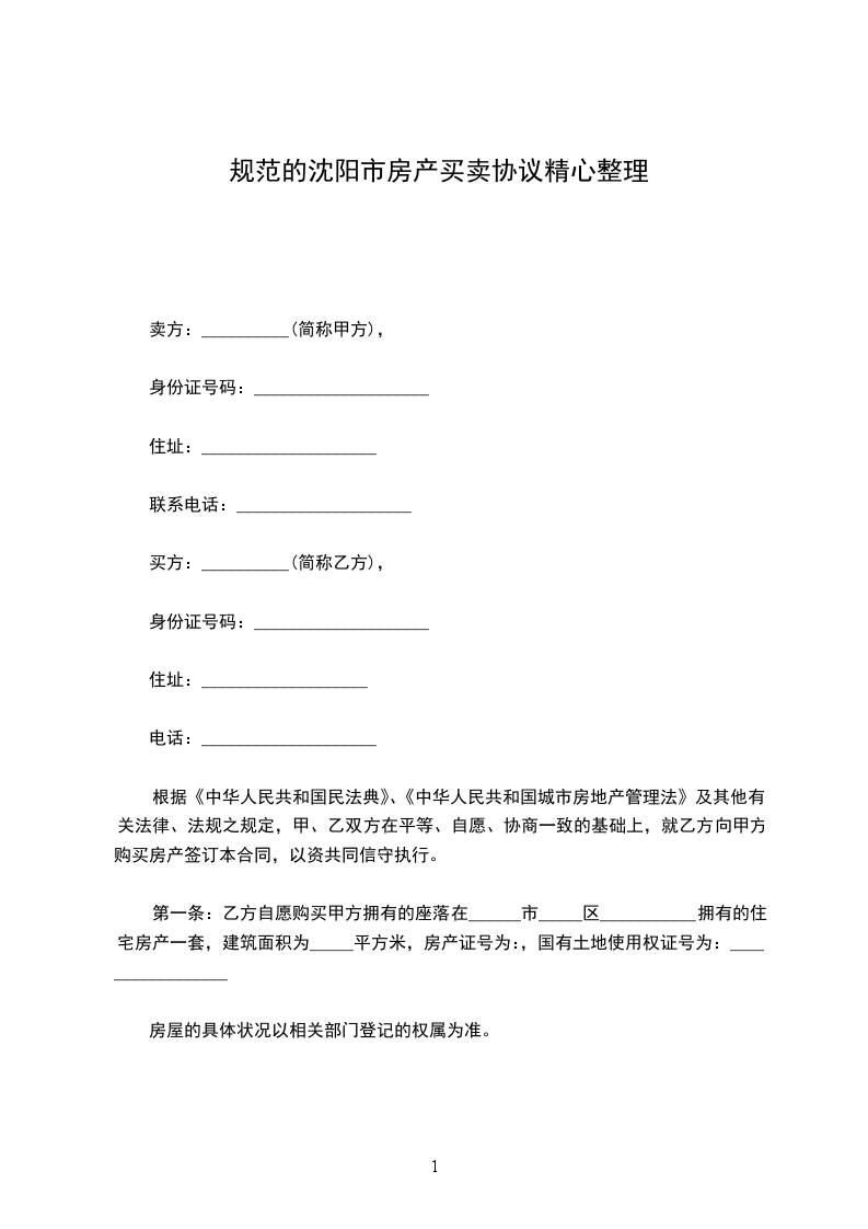 第一条:乙方自愿购买甲方拥有的座落在______市_____区___________拥有的住宅房产一套,建筑面积为_____平方米,房产证号为:,国有土地使用权证号为:_________________