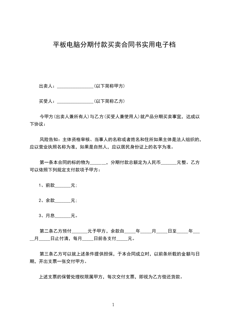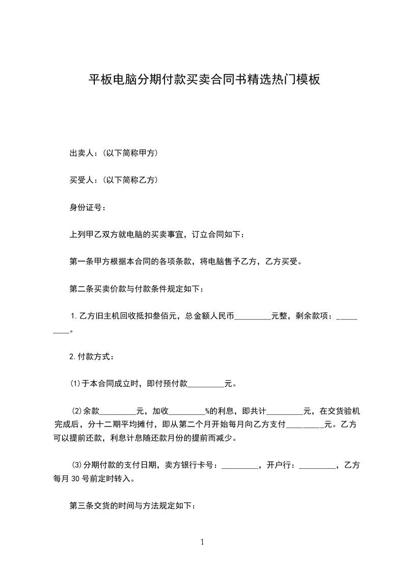 第一条:分期付款总额为人民币_________元整。乙方可以依照下列规定支付款项予甲方: