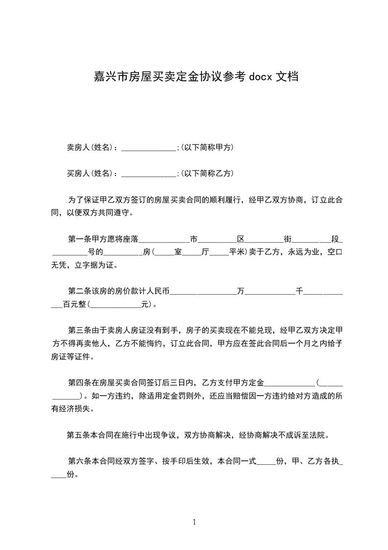 第一条甲方愿将座落_____________市__________区__________街__________段__________号的__________房(_____室_____厅_____平米)卖于乙方,永远为业,空口无凭,立字据为证。