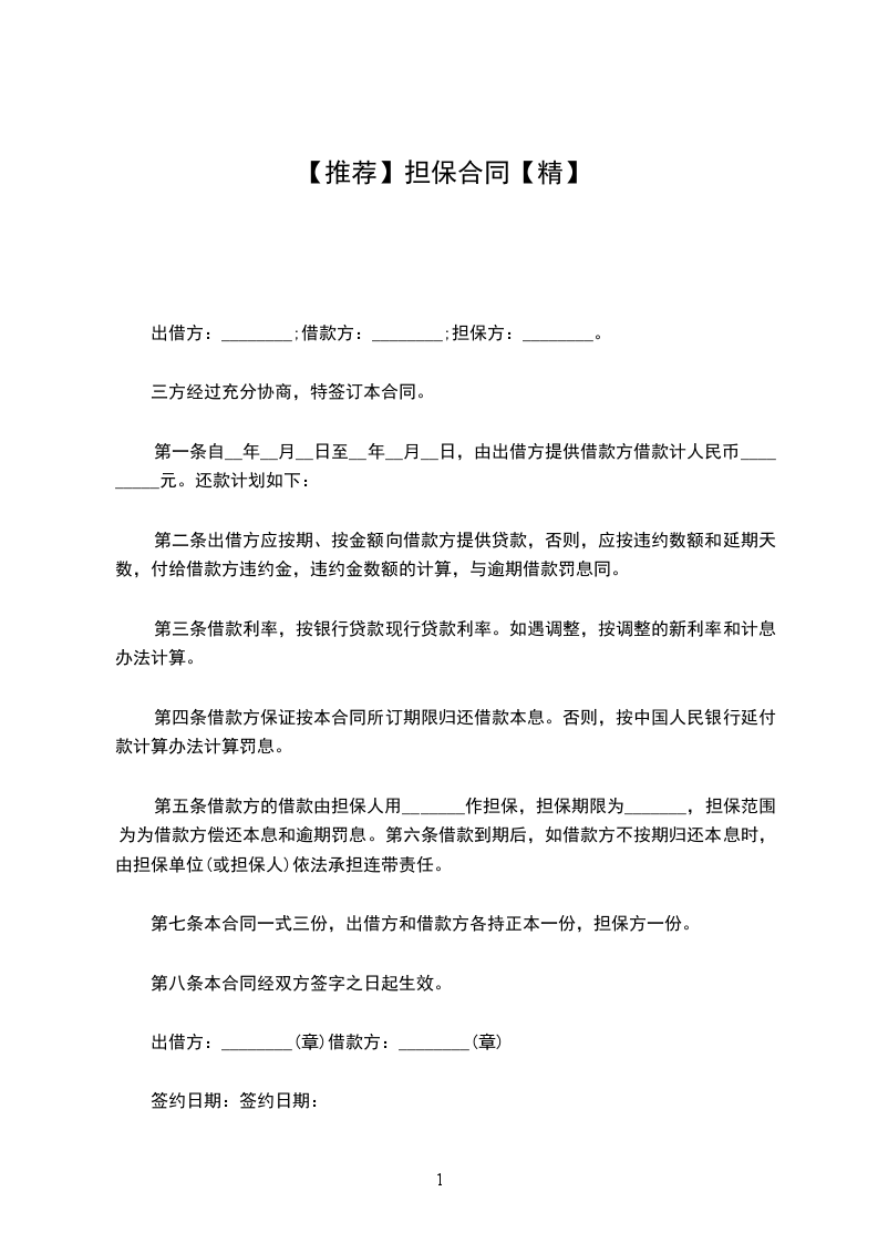 一、本担保人_________愿意为_________在_________公司任职期间做经济担保。