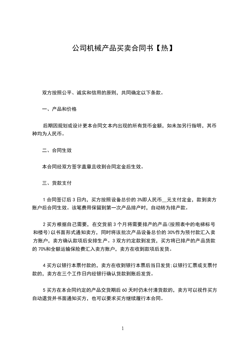 第一条标的、数量、价款