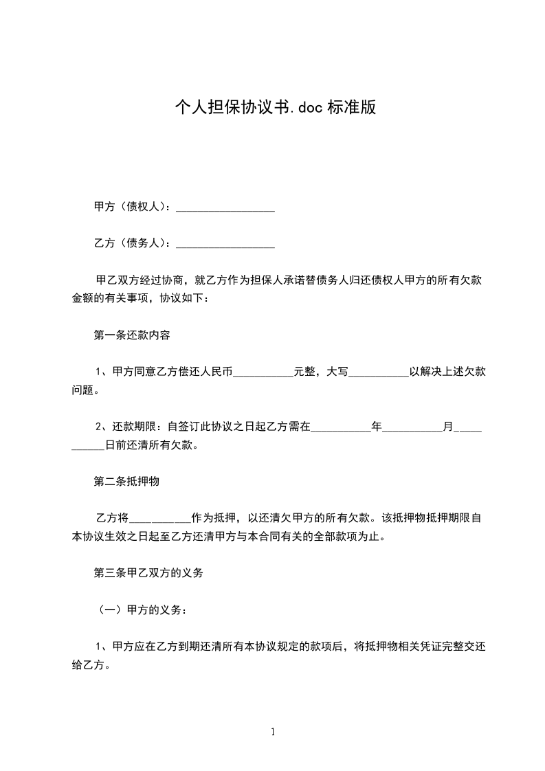 甲乙双方经过协商,就乙方作为担保人承诺替债务人归还债权人甲方的所有欠款金额的有关事项,协议如下: