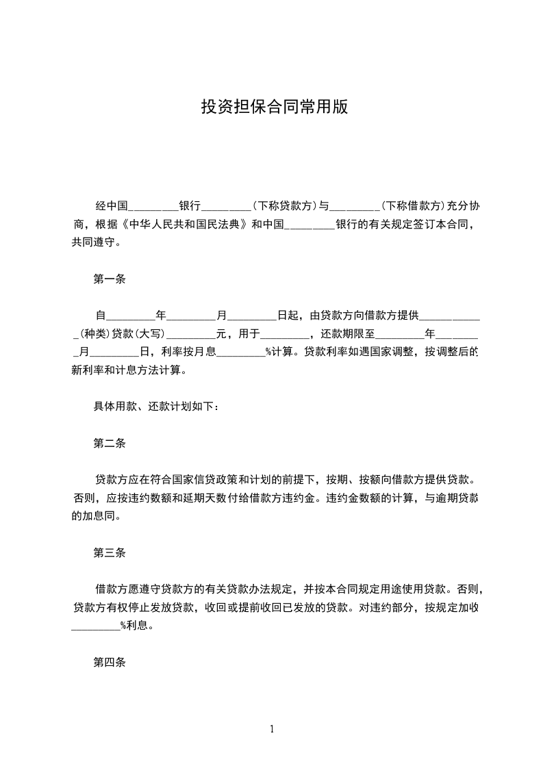担保投资应是担保权人由于_________(支付或其他出资取得这些股份)所取得的项目企业_________(普通)股份;但这一股份数必须调整,以反映股份分股、股票股利或类似指标和根据以下第6条所规定的备用担保纳入本合同担保的附加股份。