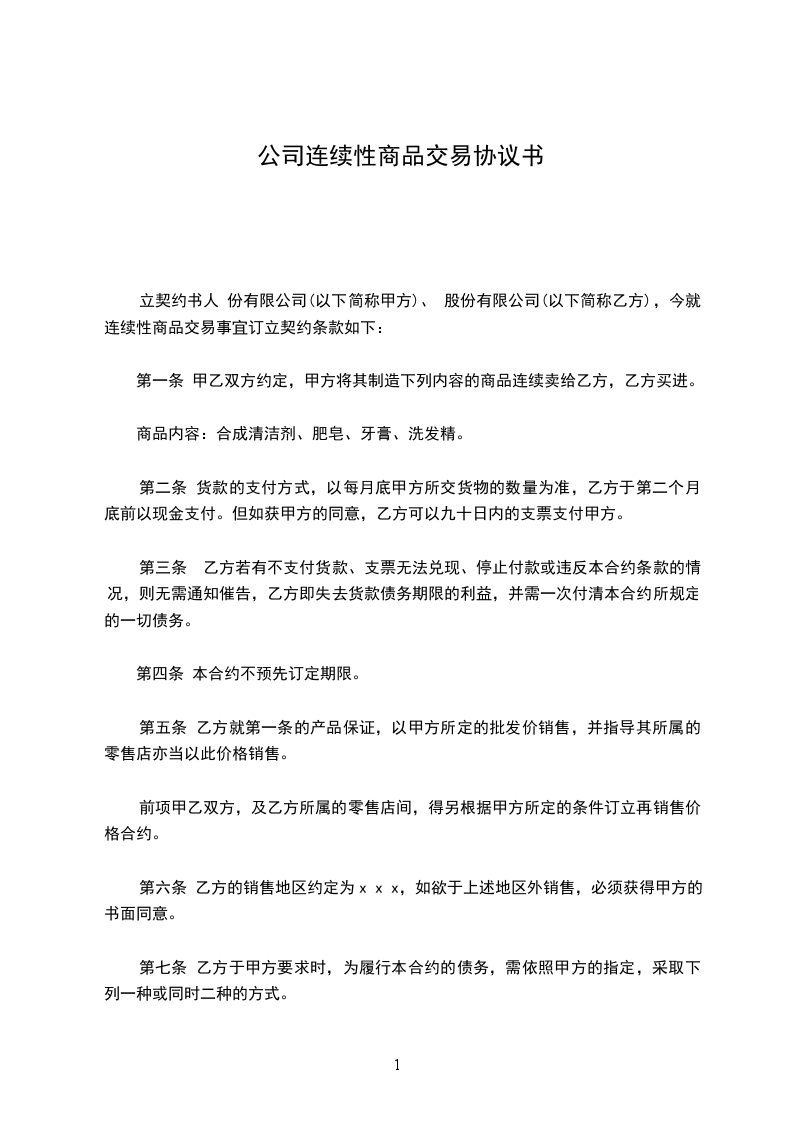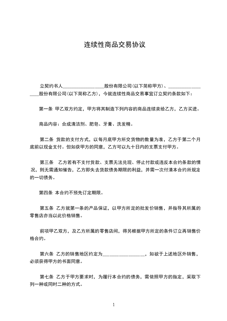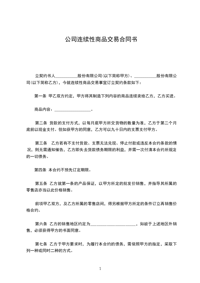 1、乙方如延期交货或交货数量不足者,乙方应偿付甲方此批货款总值1%的违约金。