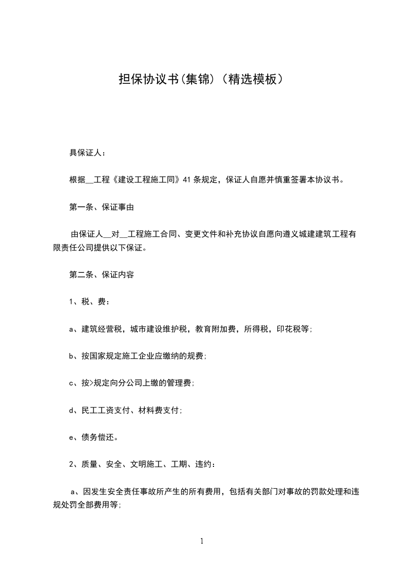 由保证人__对__工程施工合同、变更文件和补充协议自愿向遵义城建建筑工程有限责任公司提供以下保证。