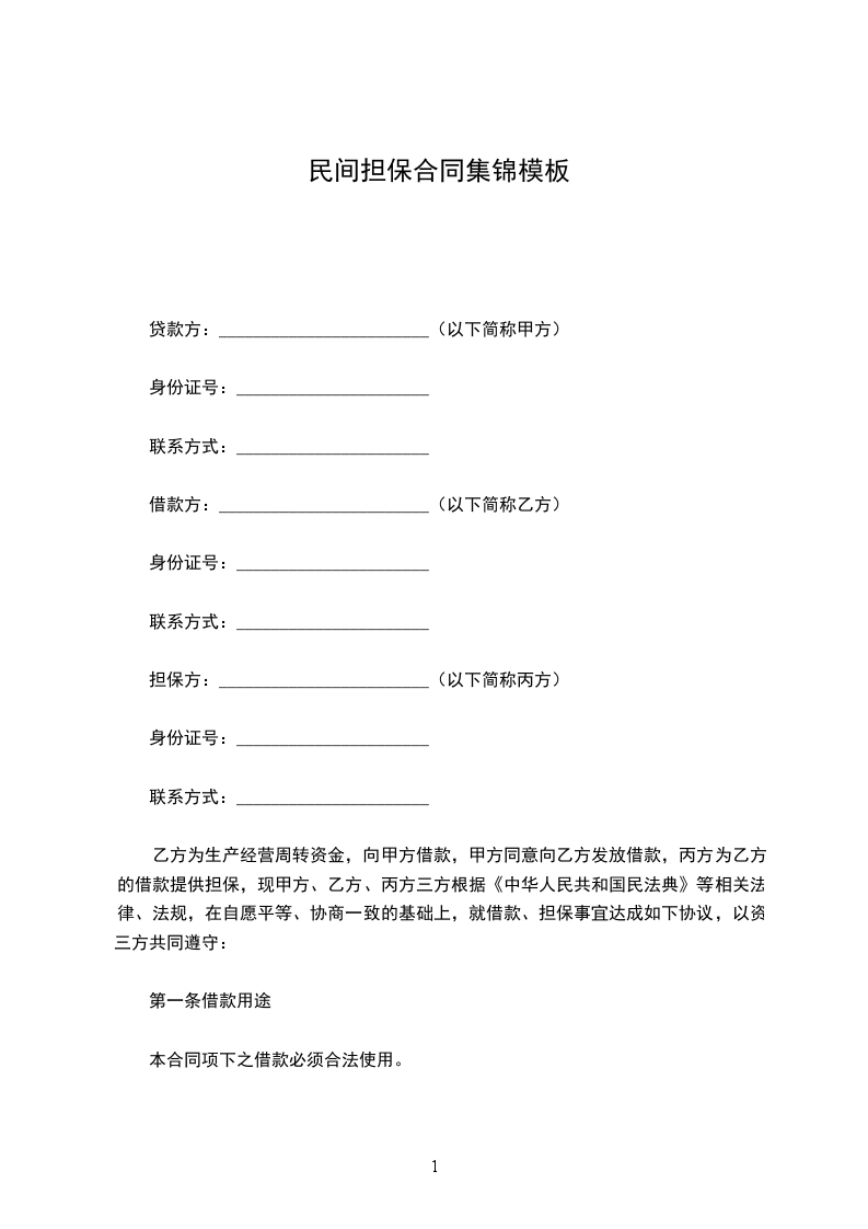 1、保证人一次向分公司缴纳保证金__元;工程总价的__%。