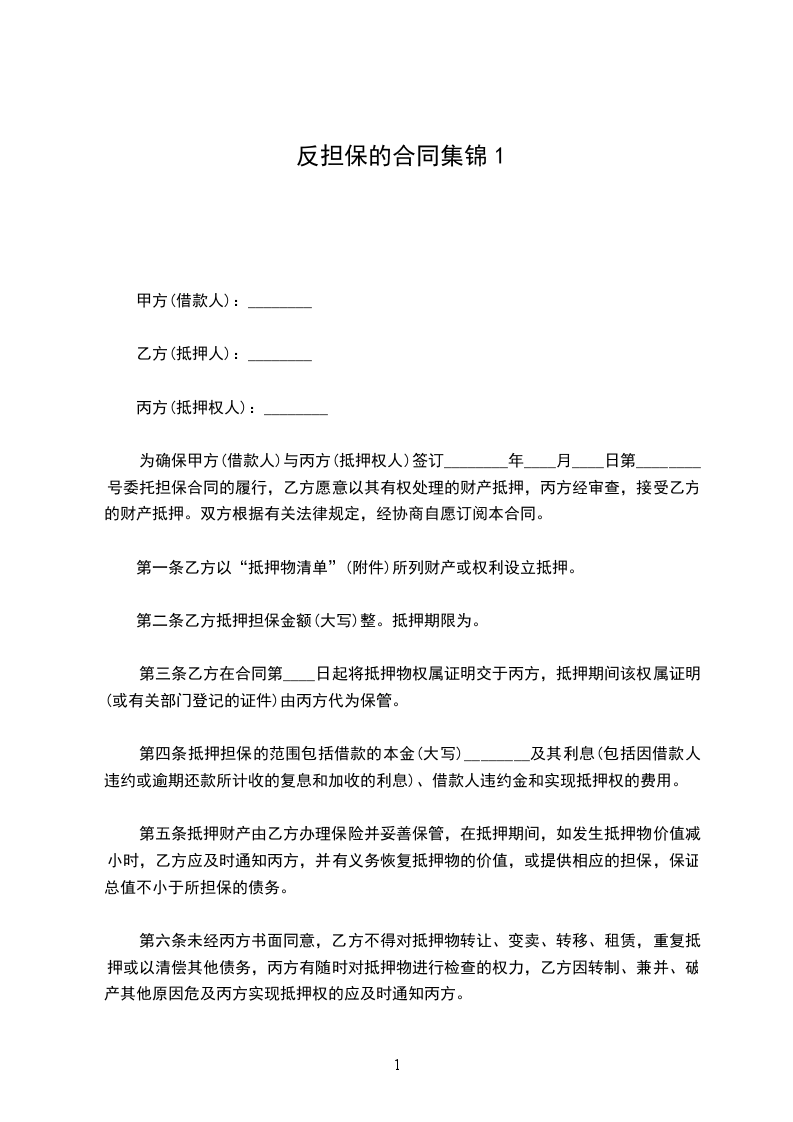 合同甲方一(抵押人):
