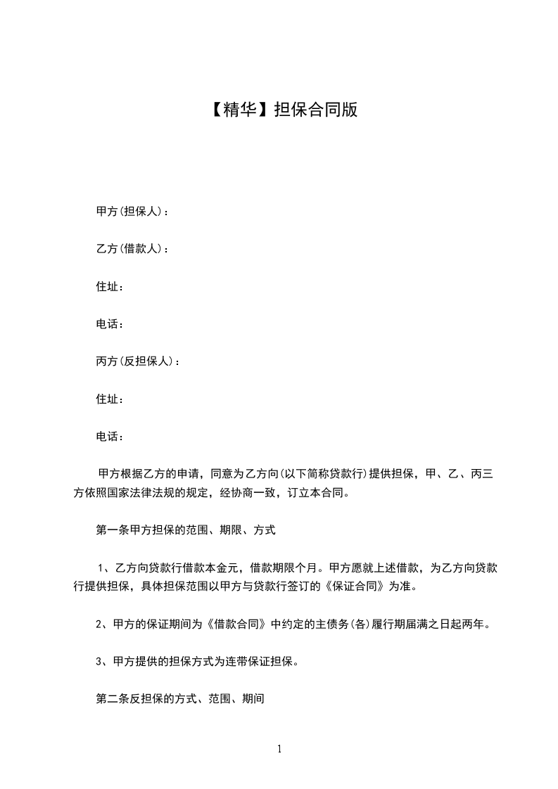 1、丙方向甲方提供反担保,承担连带保证责任。