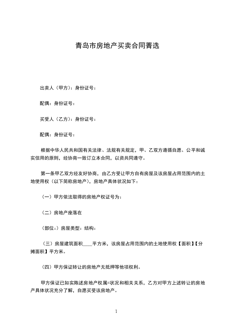 (二)房地产座落在青岛市____________【区】【县】____________【路】____________【弄】【新村】_______________【支弄】____________号____________室。(部位:____________)房屋类型:____________;结构:____________;
