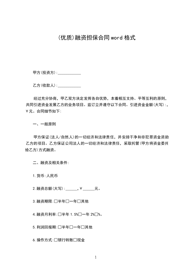 4.融资月利率:□半年1.5%□一年2%□%。