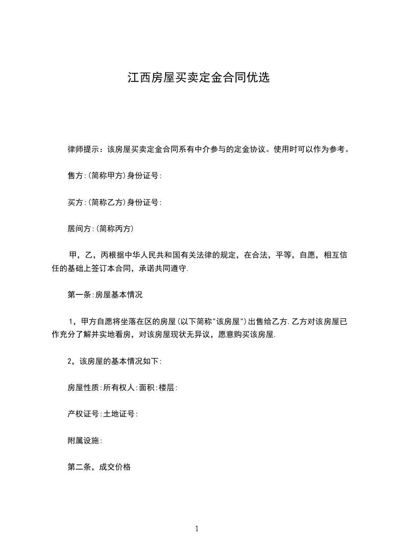 为购买该房屋的定金。甲、乙双方商定签订本协议后__________天内准备相关资料并到丙方公司签