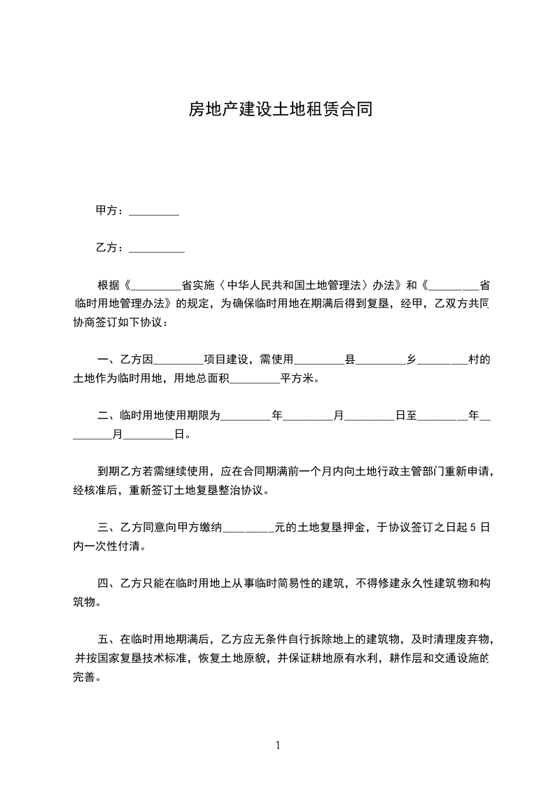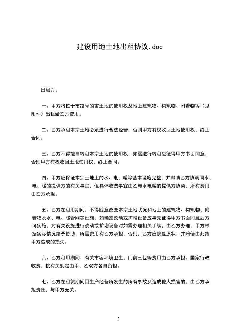 一、甲方将位于 市 路 号的 亩土地的使用权及地上建筑物、构筑物、附着物等(见附件)出租给乙方使用。