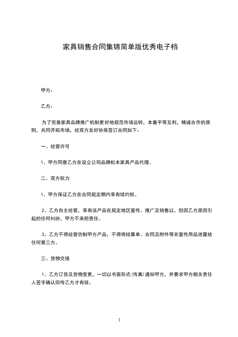 1、甲方保证乙方在合同规定的经营地域和期限内享有品牌家具经营销售权并拥有优先续约权,甲乙双方应当在本合同到期之前的一个月内完成续约。