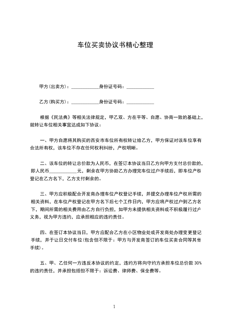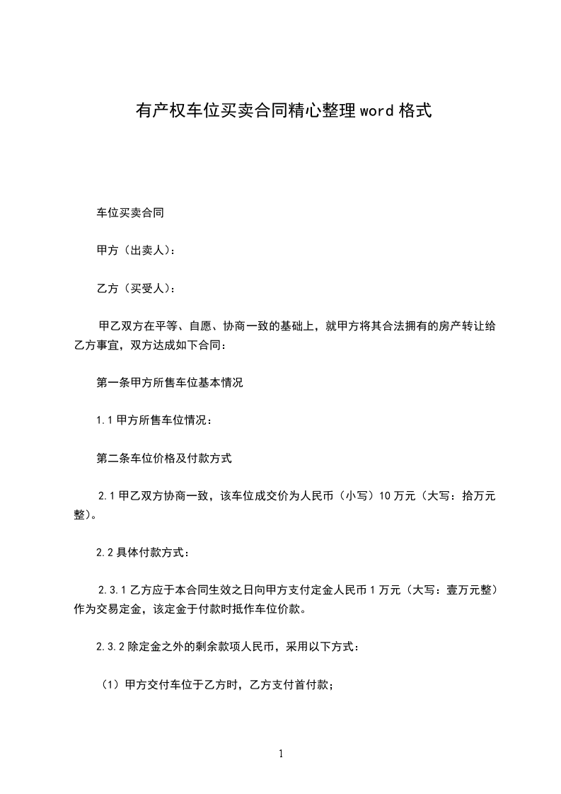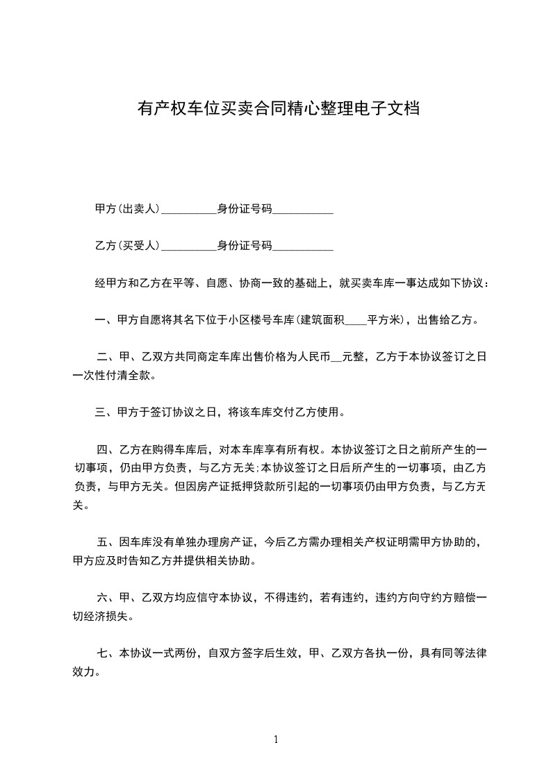 一、甲方自愿将其名下位于小区楼号车库(建筑面积____平方米),出售给乙方。