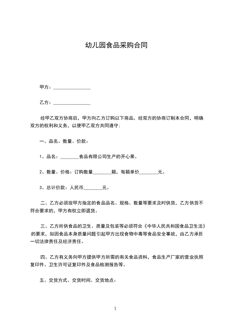 二、乙方必须按甲方指定的食品品名、规格、数量等要求及时供货,乙方供货不符合要求的,甲方有权立即退货。