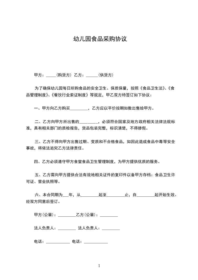三、乙方所供食品的卫生、质量及包装等必须符合《中华人民共和国食品卫生法》的要求,如因食品本身质量问题引起甲方出现食物中毒等食品安全事故,由乙方承担一切法律责任及经济责任。