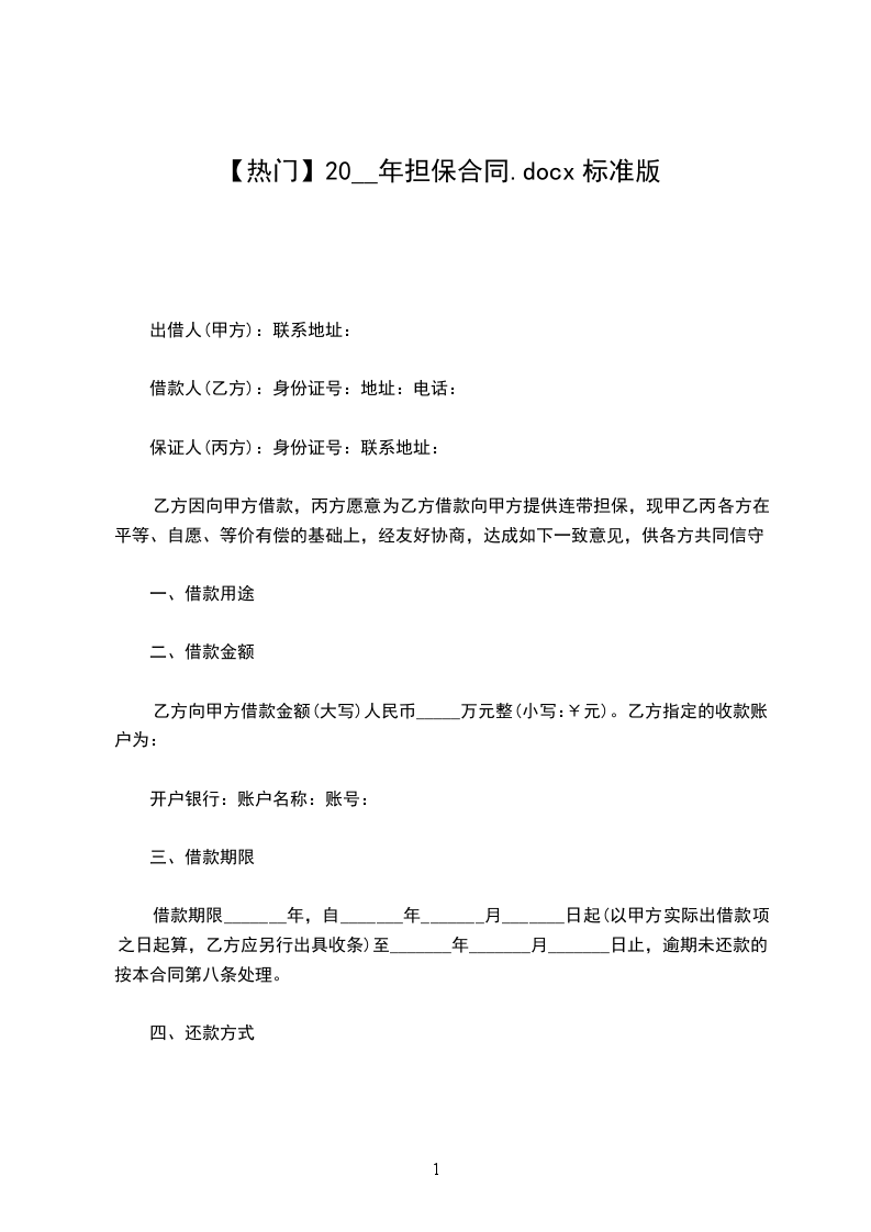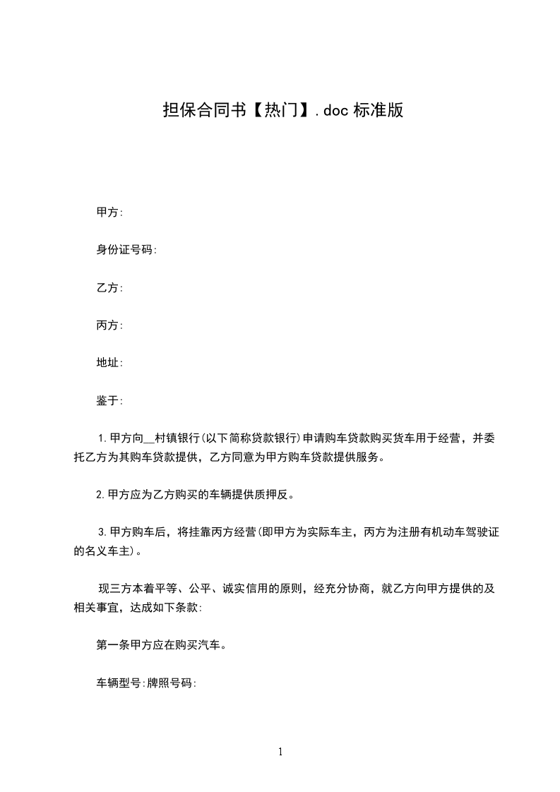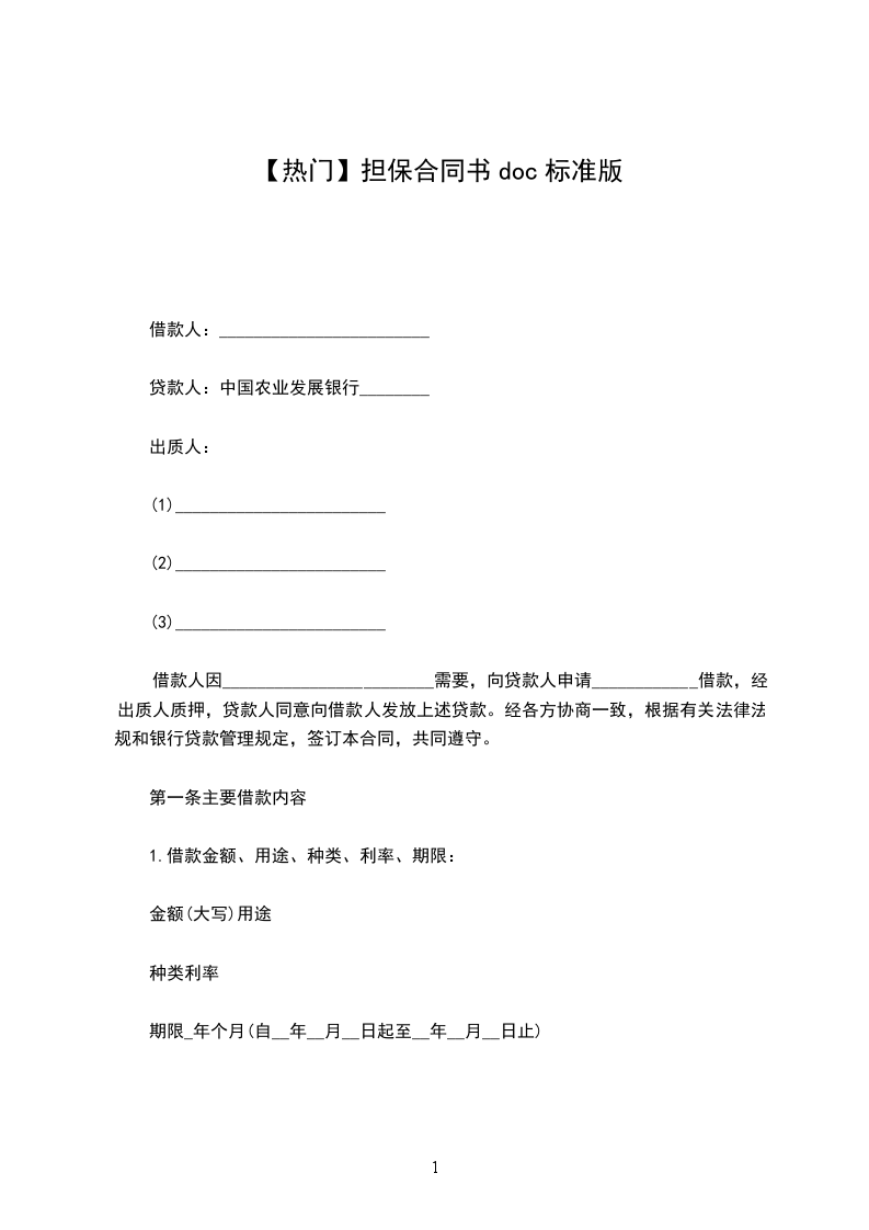 第一条借款金额:贷款方同意借款方申请和担保方的担保提供贷款。