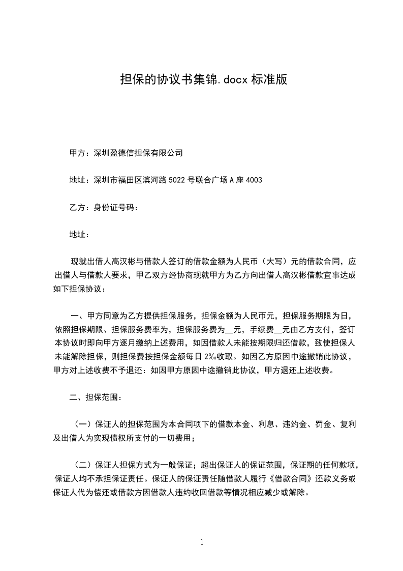 现就出借人高汉彬与借款人签订的借款金额为人民币(大写)元的借款合同,应出借人与借款人要求,甲乙双方经协商现就甲方为乙方向出借人高汉彬借款宜事达成如下担保协议: