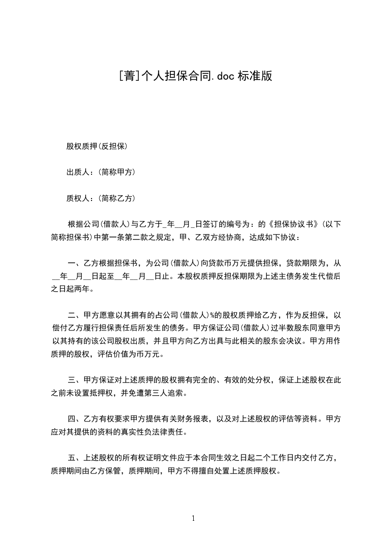 合同编号:反保字第___号