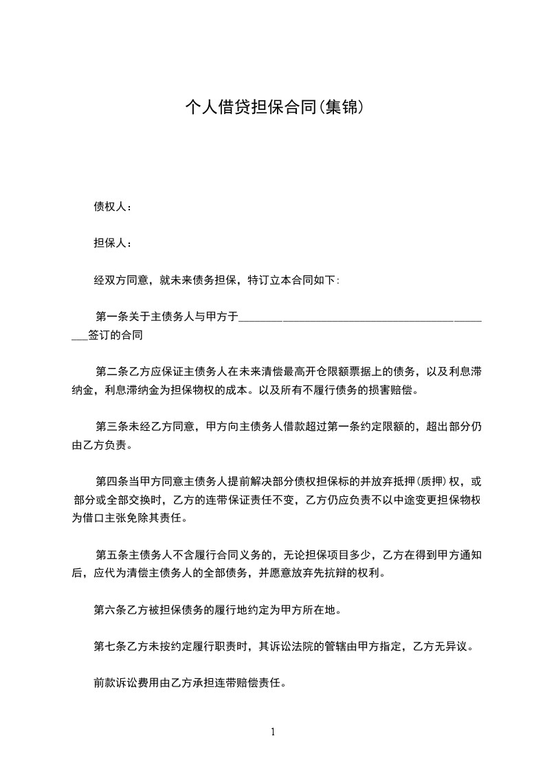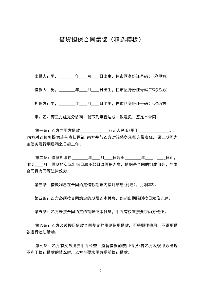 一、乙方同意就甲方与_________(以下称借款人)之间签订的《借款合同》(编号:_________年_________字第_________号)向甲方提供担保。