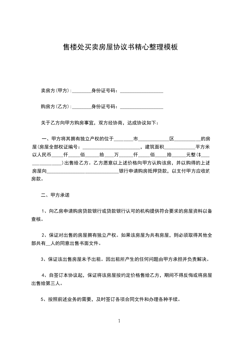 一、甲方将其拥有独立产权的位于________市_____________区___________的房屋(房屋全部权证编号:________________________,建筑面积_____________平方米)以人民币_____仟_____佰______拾____万______仟_____佰_____拾______元整($________________)出售给乙方。乙方愿意以上述价格向甲方认购该房,并以购得的上述房屋向______________________________银行申请购房抵押贷款,以支付甲方应收的房款。