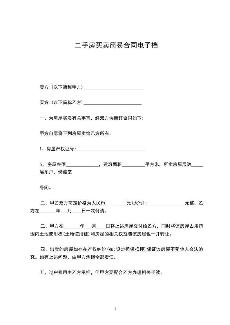 一、甲方自愿将坐落在_______________房屋出卖给乙方,并将与所出卖该房产的相关的土地使用权同时出卖给乙方。