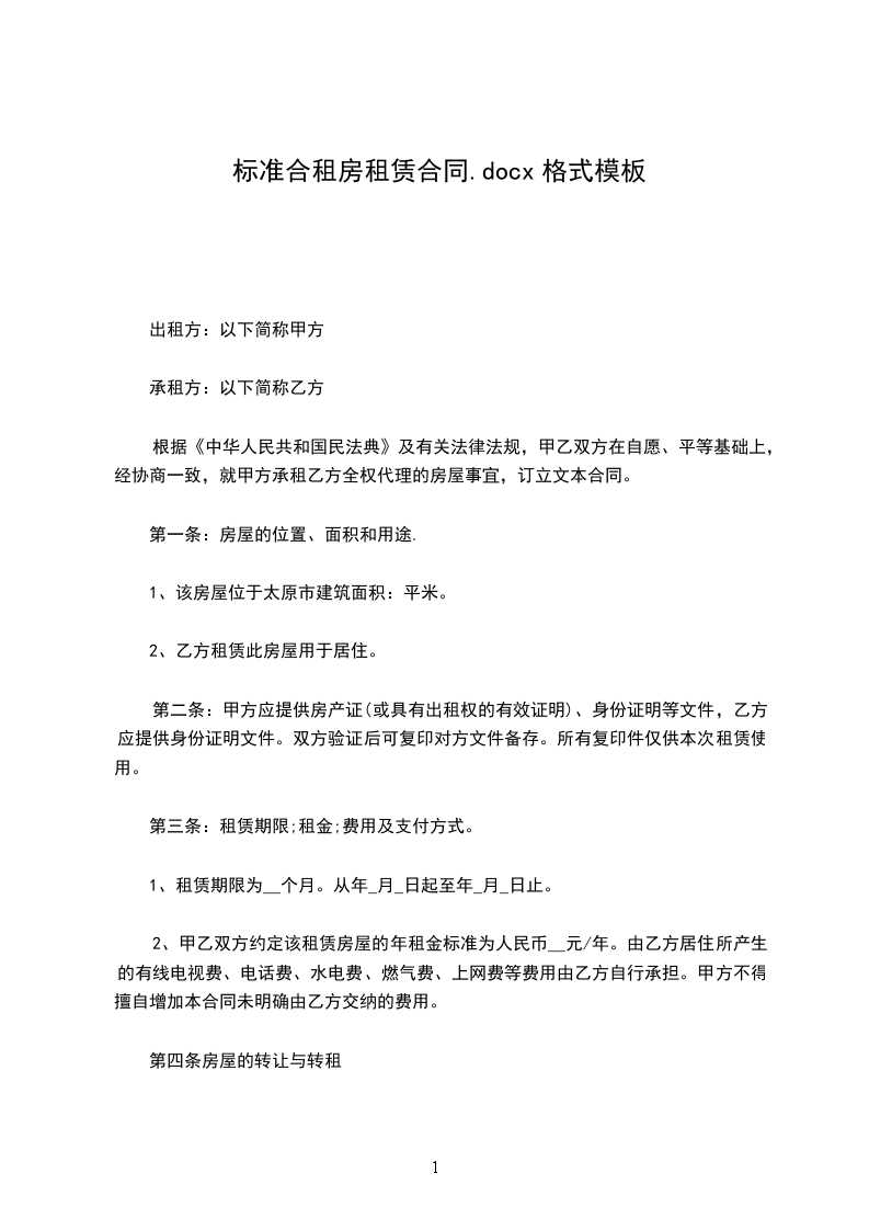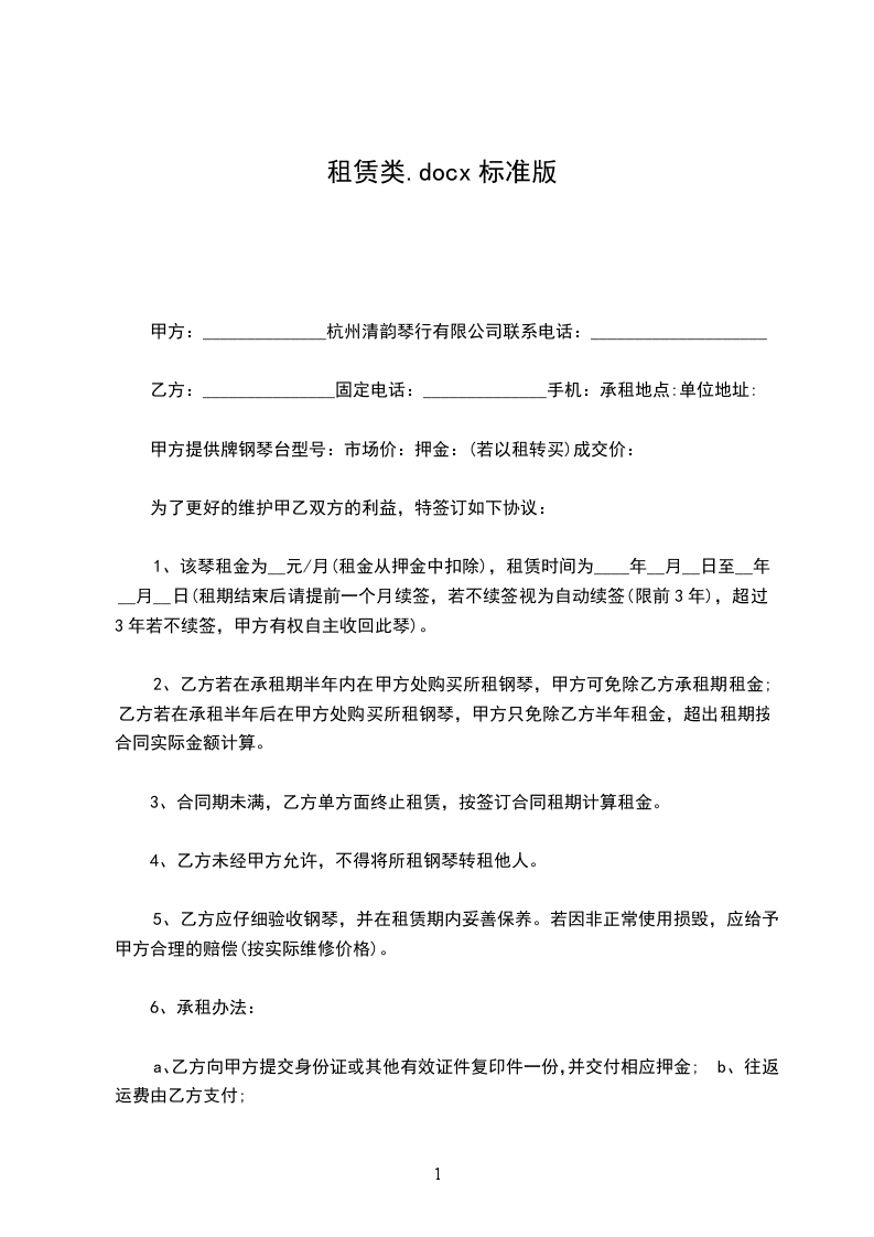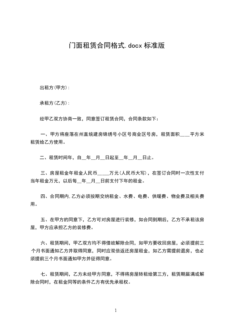 1、租赁期限为__个月。从年_月_日起至年_月_日止。