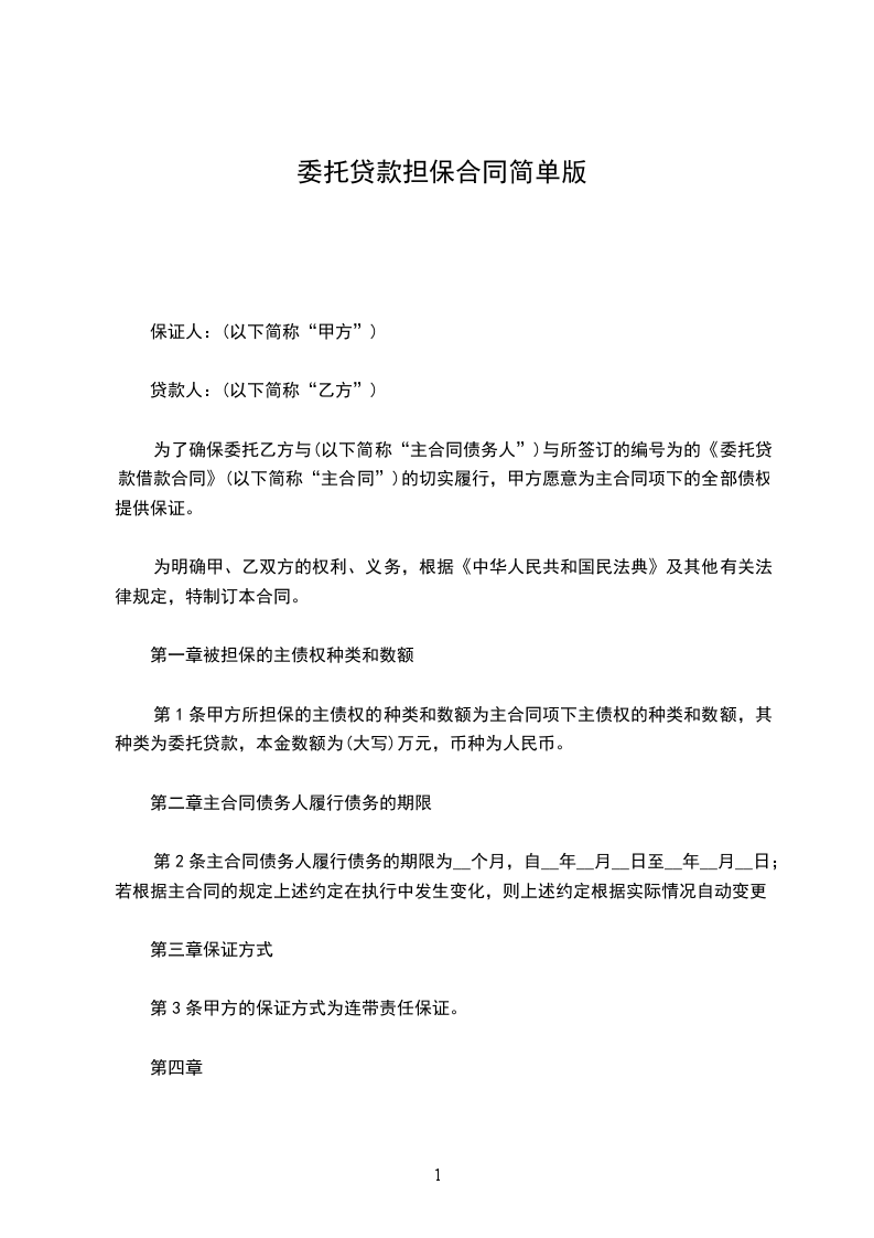 (以下简称主合同债权人)贷款事宜,为甲方提供担保。甲、乙双方按照国家法律法规、经协商一致订立本合同。