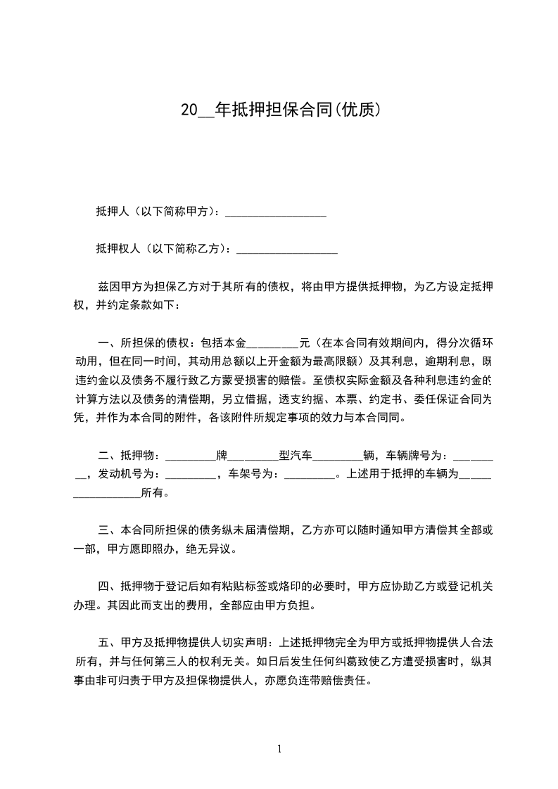 1、借款:乙方用甲方房屋向银行提出的抵押借款应单独作为一笔借款,单独签订借款合同,借款金额不得超过甲方房屋现行市场价(或按银行要求进行评估的评估价),如超出,超出部分甲方不在房屋价值外承担任何担保责任,借款时间不得超过年,在此时间内,如乙方还清借款后又需再次借款,未经甲方另行书面同意,乙方不得以本协议房屋擅自做抵押。