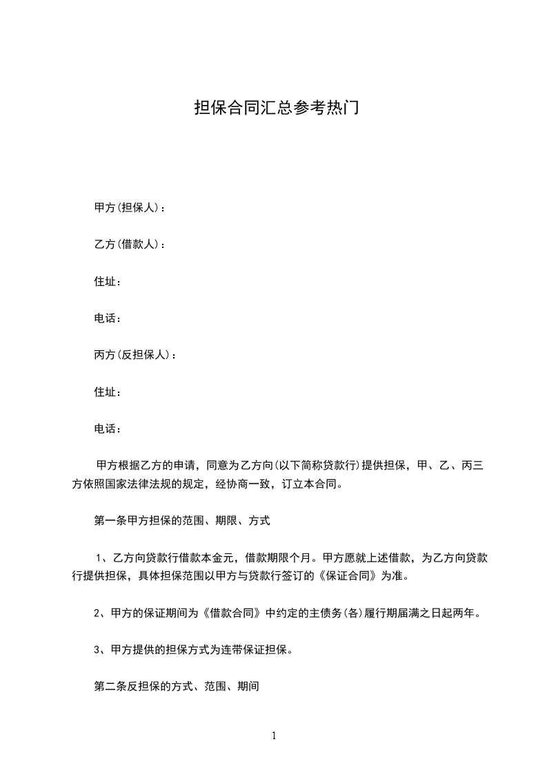 1、丙方向甲方提供反担保,承担连带保证责任。