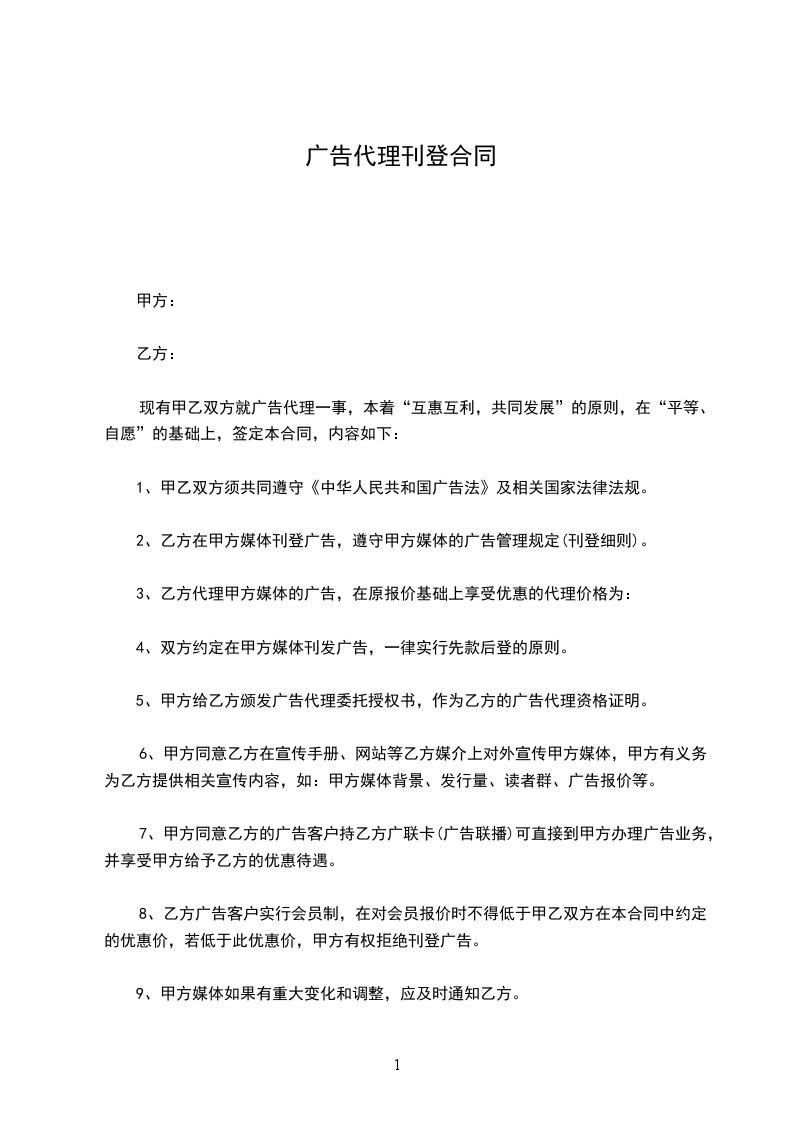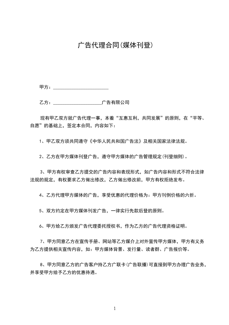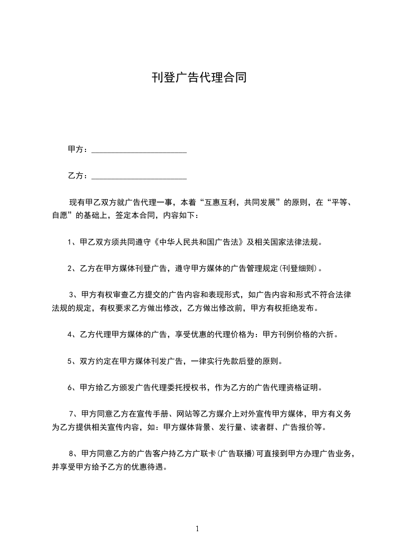 现有甲乙双方就广告代理一事,本着“互惠互利,共同发展”的原则,在“平等、自愿”的基础上,签定本合同,内容如下: