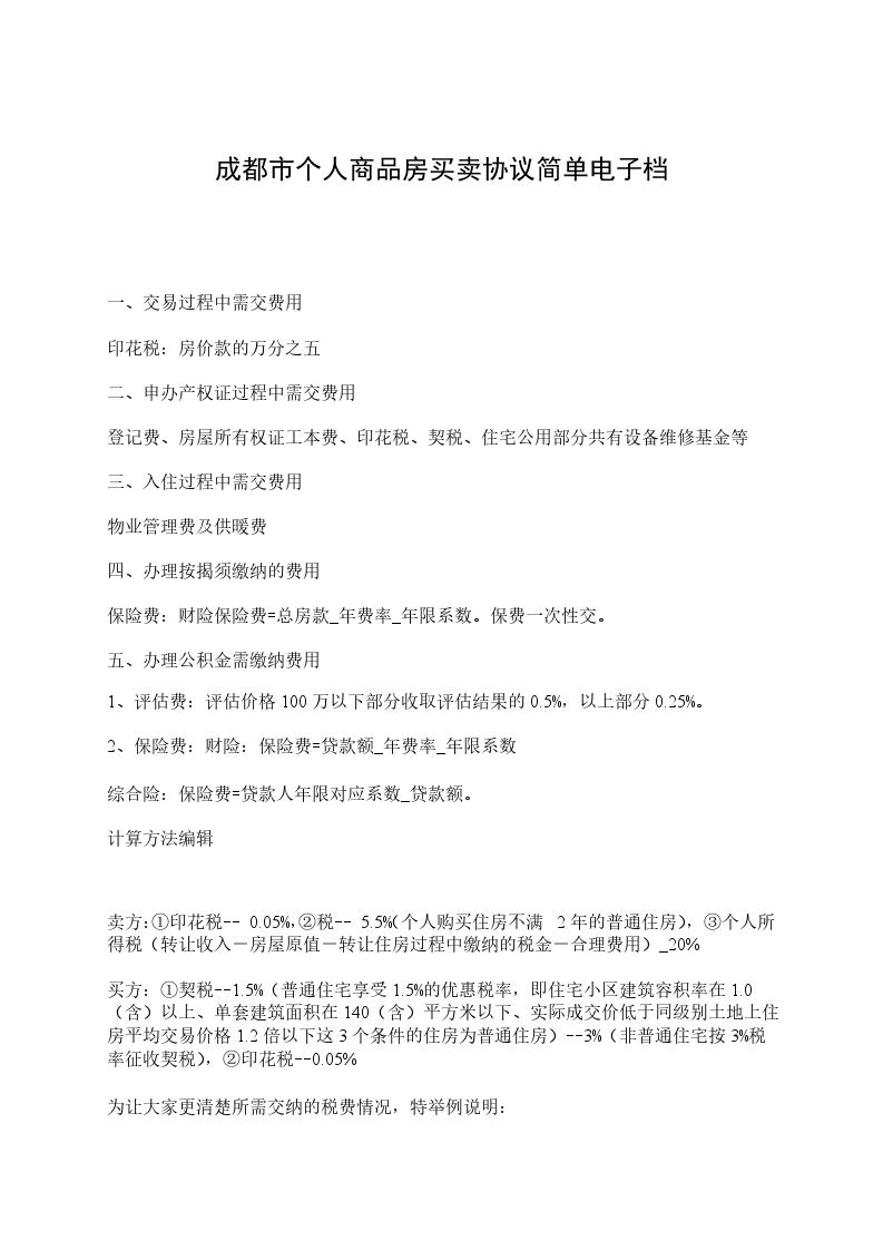 九、本协议签订前,该房屋如有应缴纳的一切税收、费用,概由甲方负责。本协议签订后办理房屋所有权证书费用为乙方负责。其他税费按有关法律规定,各自承担。