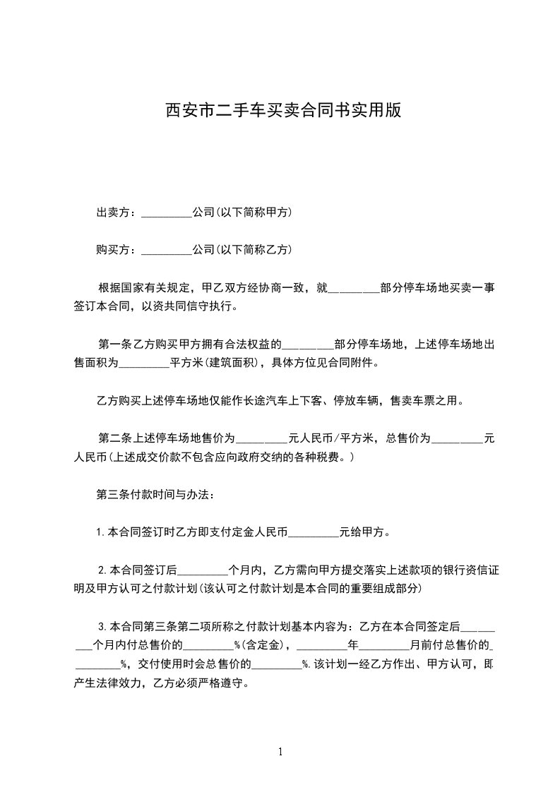 第一条乙方购买甲方拥有合法权益的_________部分停车场地,上述停车场地出售面积为_________平方米(建筑面积),具体方位见合同附件。