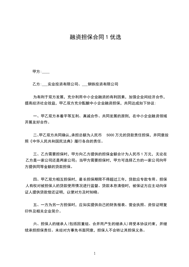 一、总则甲方以(公司法人自然人)全部的经济和法律责任保证,安排好干净、无犯罪性质的资金为乙方的项目融资。乙方以公司法人全部的经济和法律责任保证,采取托管(甲方将资金托管到乙方)的方式融资。