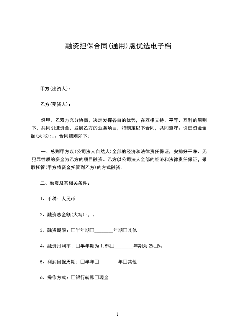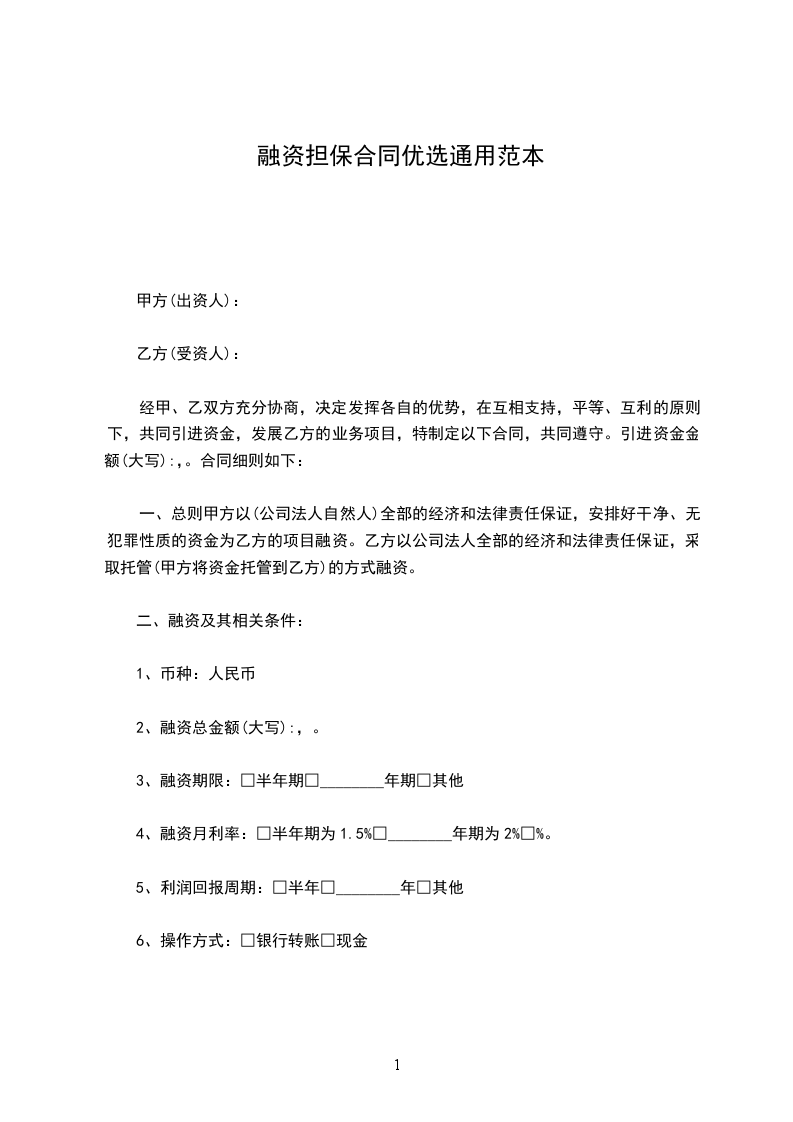 4、融资月利率:□半年期为1.5%□________年期为2%□%。