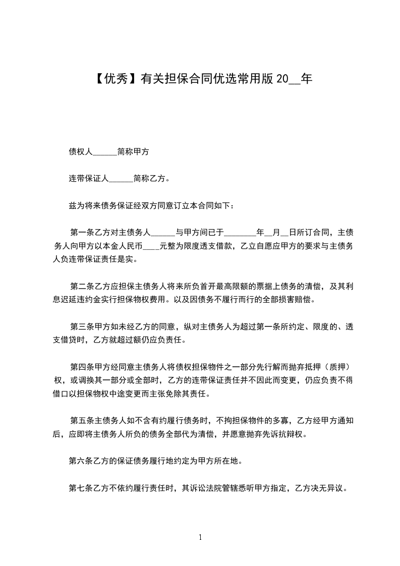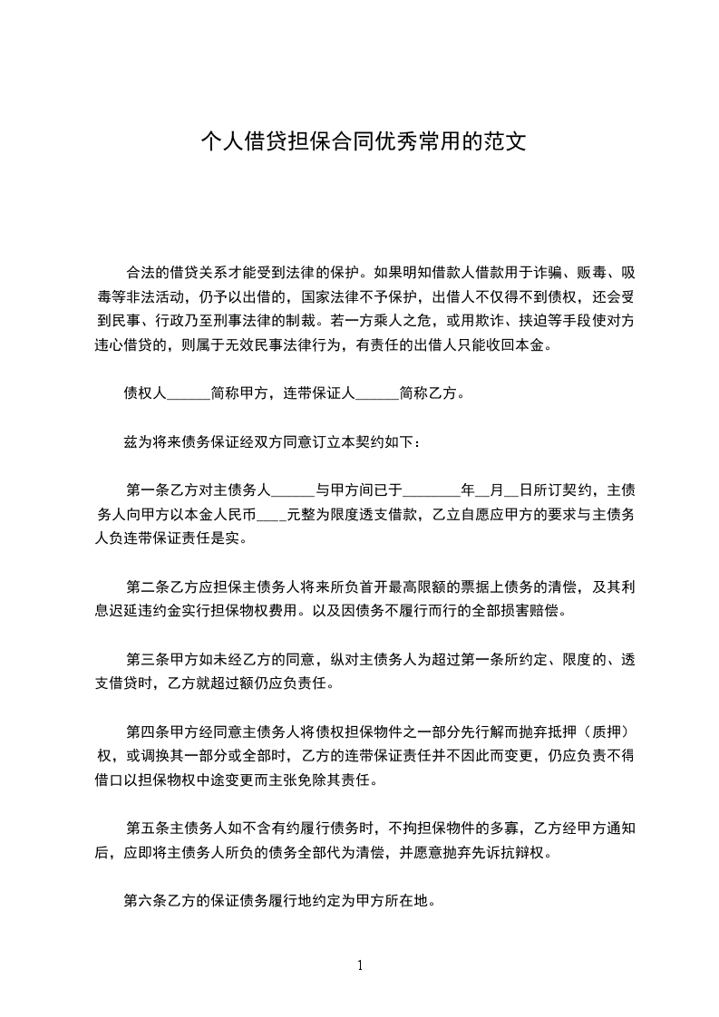 一、本人同意对该笔借款合同及今后可能发生的修改、补充条款中债务人的所有债务承担无限连带责任;如债务人未按借款合同中的承诺按期足额偿还全部债务,导致贵公司损失的,本人保证在收到索款通知后十五日内无条件将上述款项支付给贵公司。