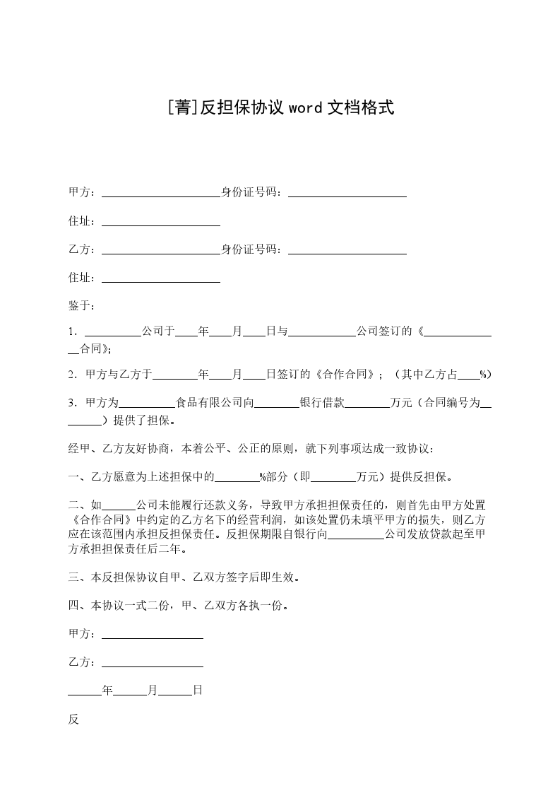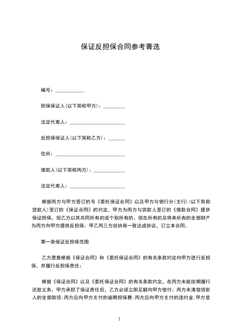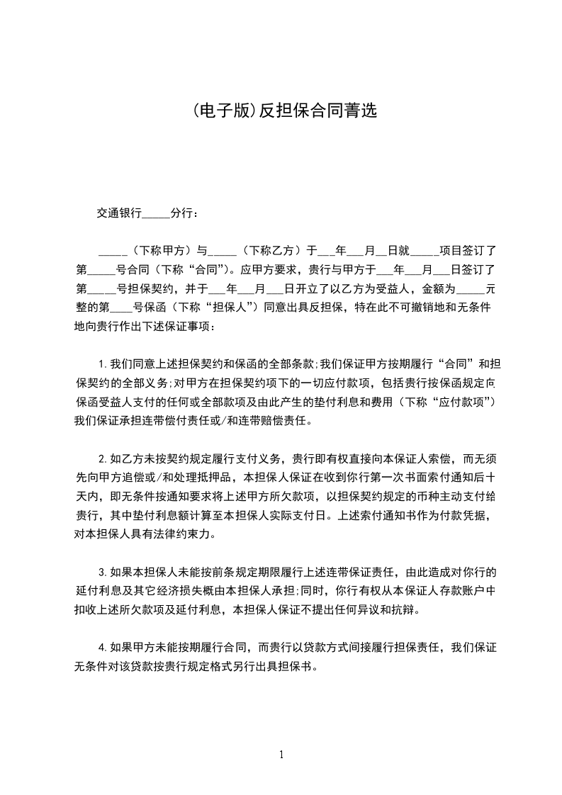 (1)经甲方认可的企业法人或自然人在乙方要求下正式向甲方签发以甲方为受益人的不可撤销的连带责任反担保保证书。