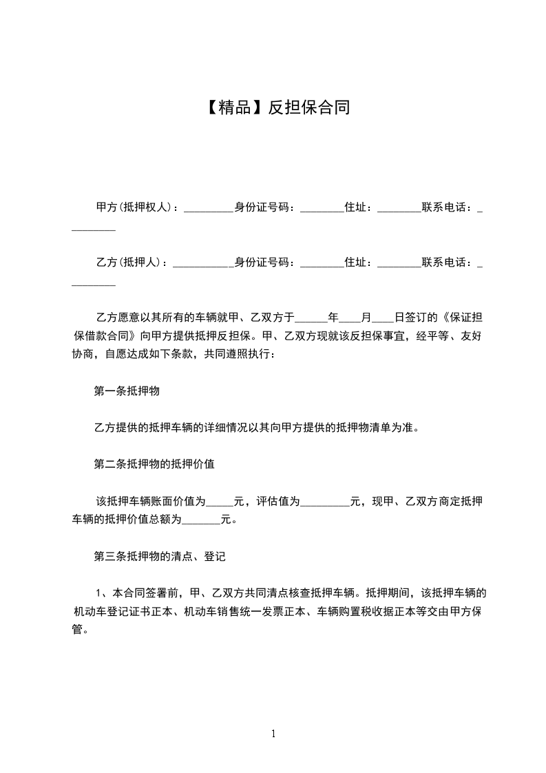 1.向甲方提供下列一项或数项反担保: