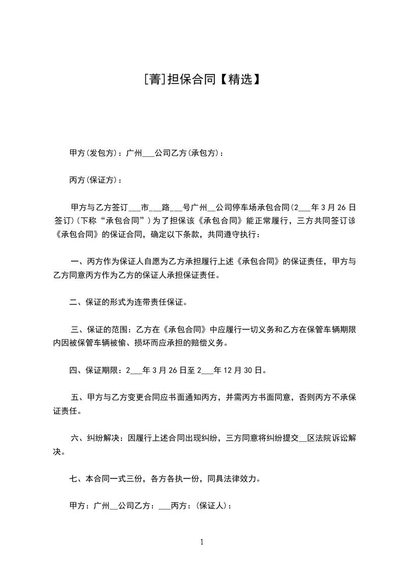 本担保合同由上列各方于_______年______月______日在_________市订立。