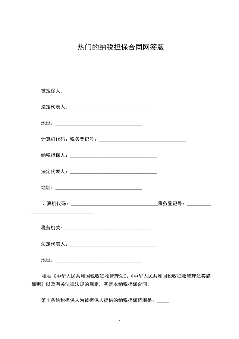 根据《中华人民共和国税收征收管理法》、《中华人民共和国税收征收管理法实施细则》以及有关法律法规的规定,签定本纳税担保合同。