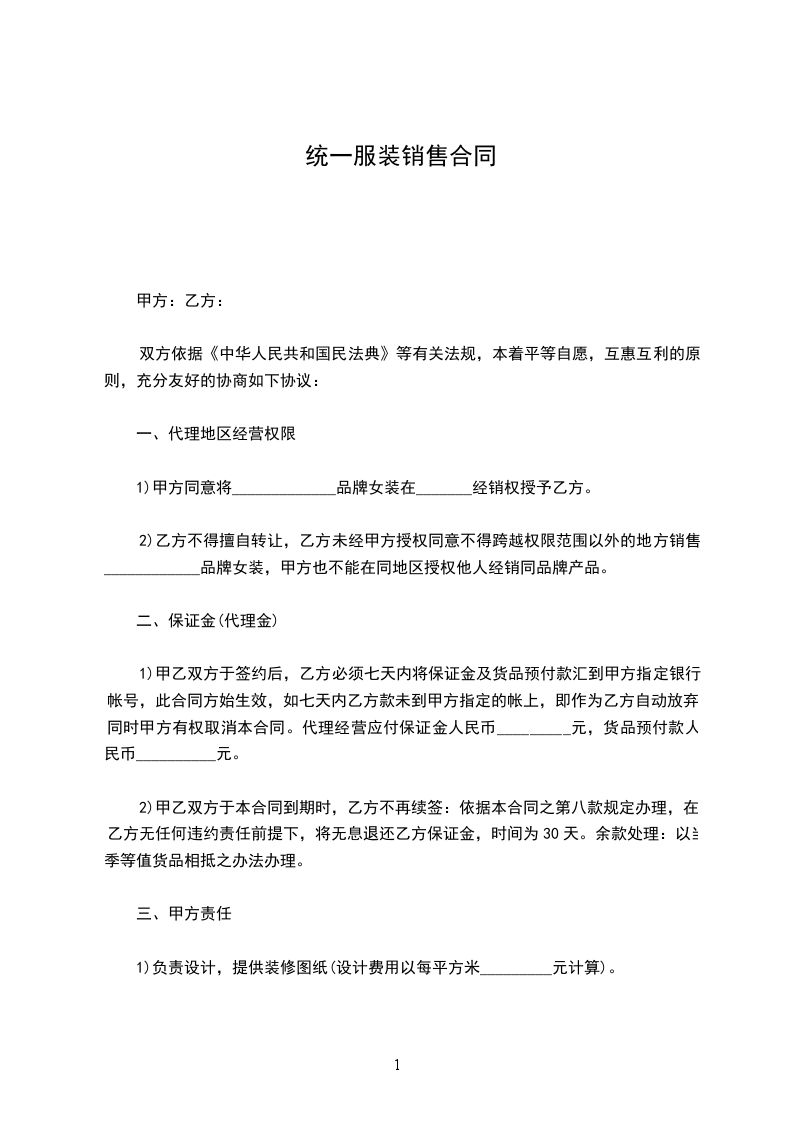 2)乙方不得擅自转让,乙方未经甲方授权同意不得跨越权限范围以外的地方销售____________品牌女装,甲方也不能在同地区授权他人经销同品牌产品。