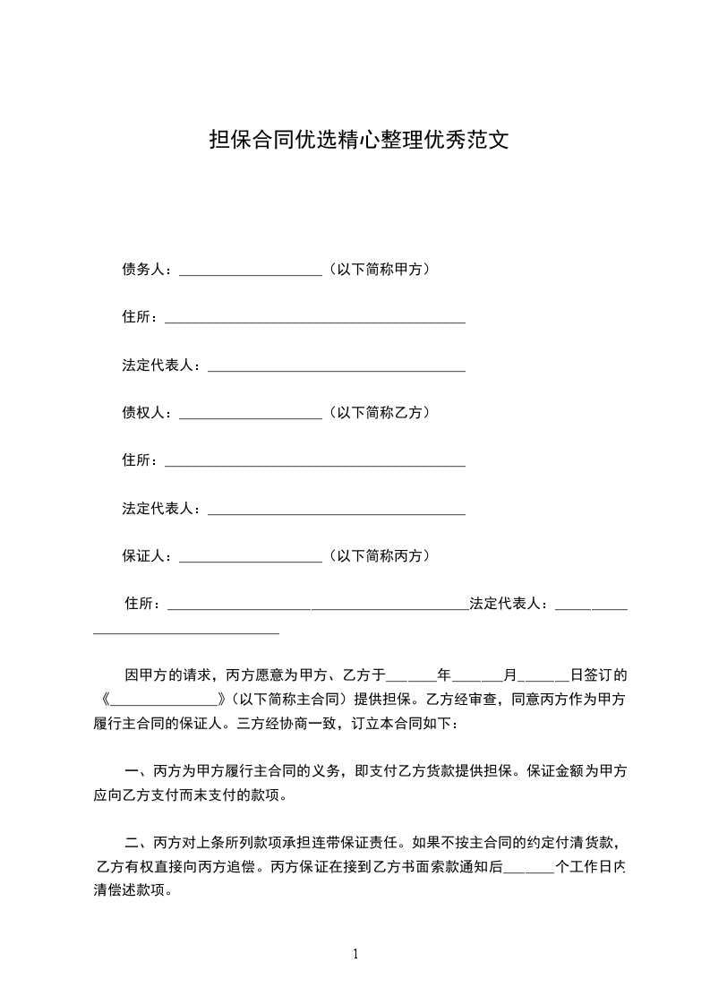 为保证上述主合同的履行,丙方自愿作为乙方的保证人。现各方达成本担保合同: