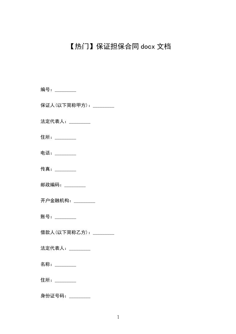一、根据主合同第_________条、第_________条的有关规定,乙方(为进行_________项目)在_________期内向丙方借用_________币种_________元(大写)本金,相应的利息为_________(币种)_________元(大写)。甲方愿意就此本金加利息的_________%向丙方提供担保,保证金额总额为_________(币种)_________元整。