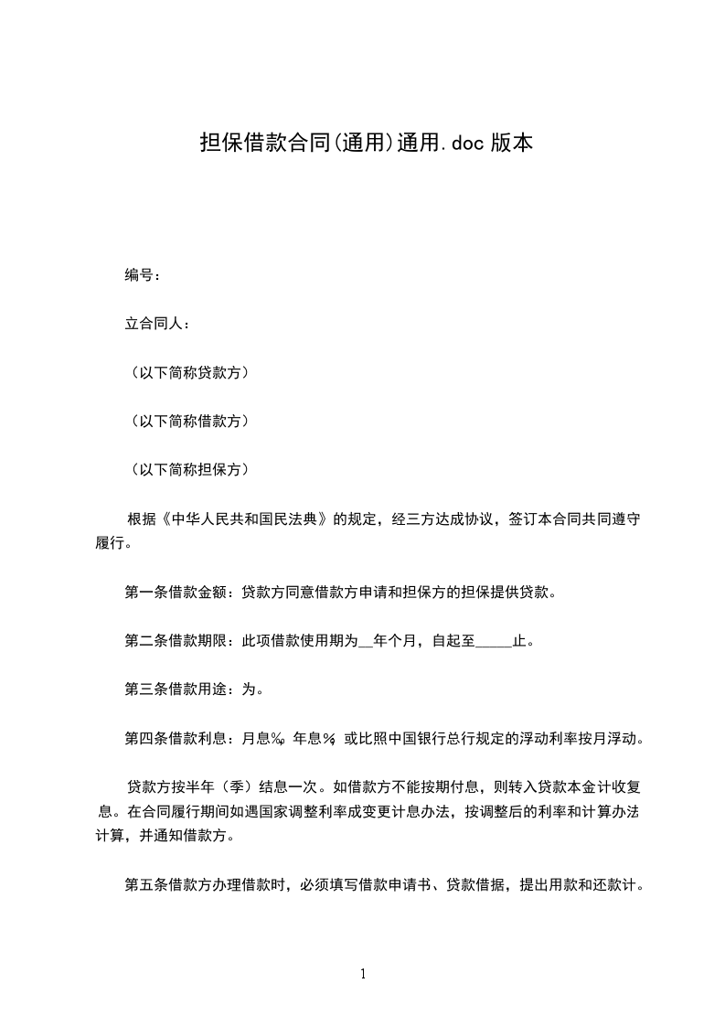 第一条借款金额:贷款方同意借款方申请和担保方的担保提供贷款。