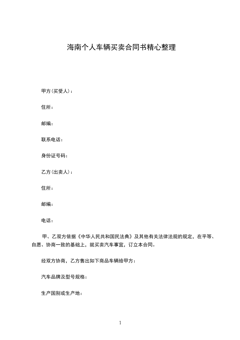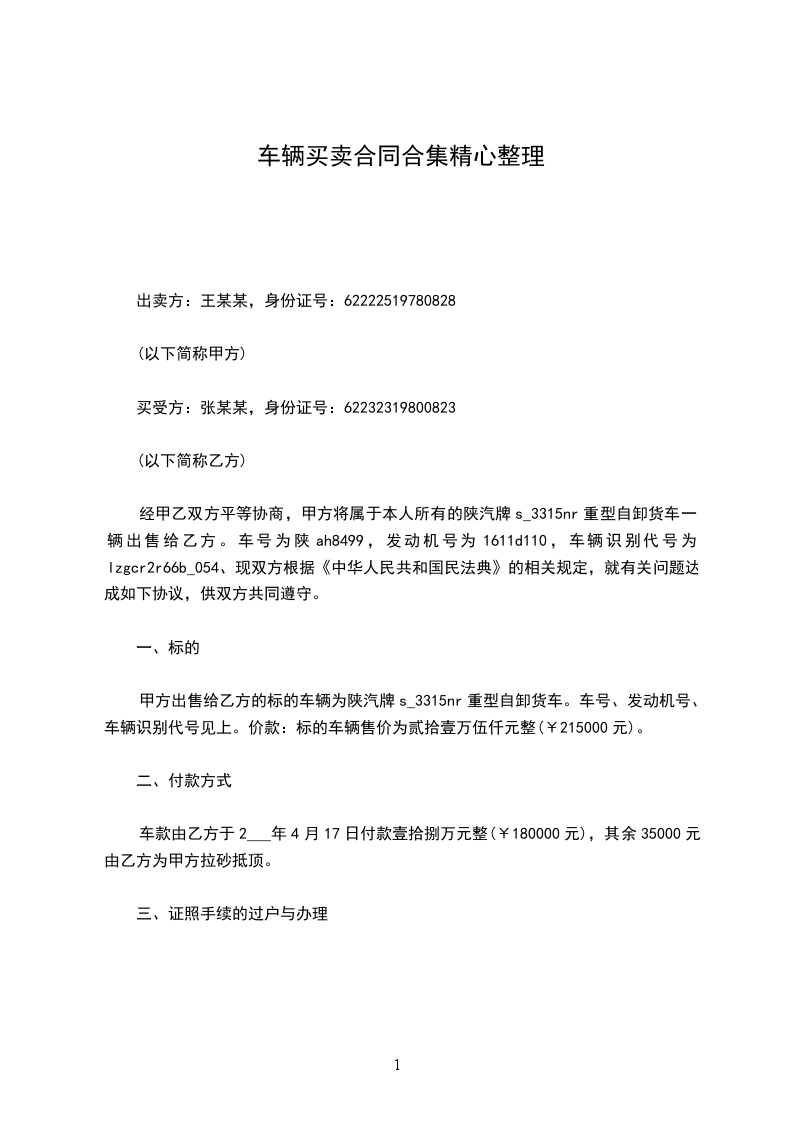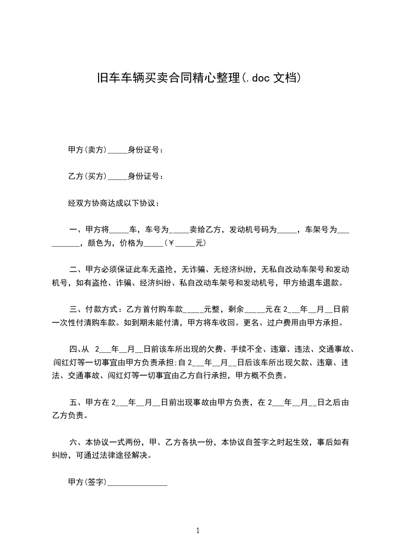 甲、乙双方就车辆买卖事宜达成以下协议,共同遵照执行: