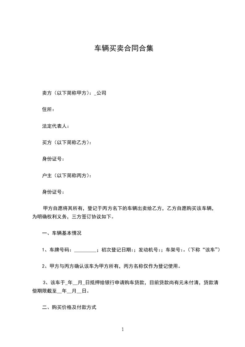 第二条:甲方向乙方支付车款人民币_____万元。包括三部分: