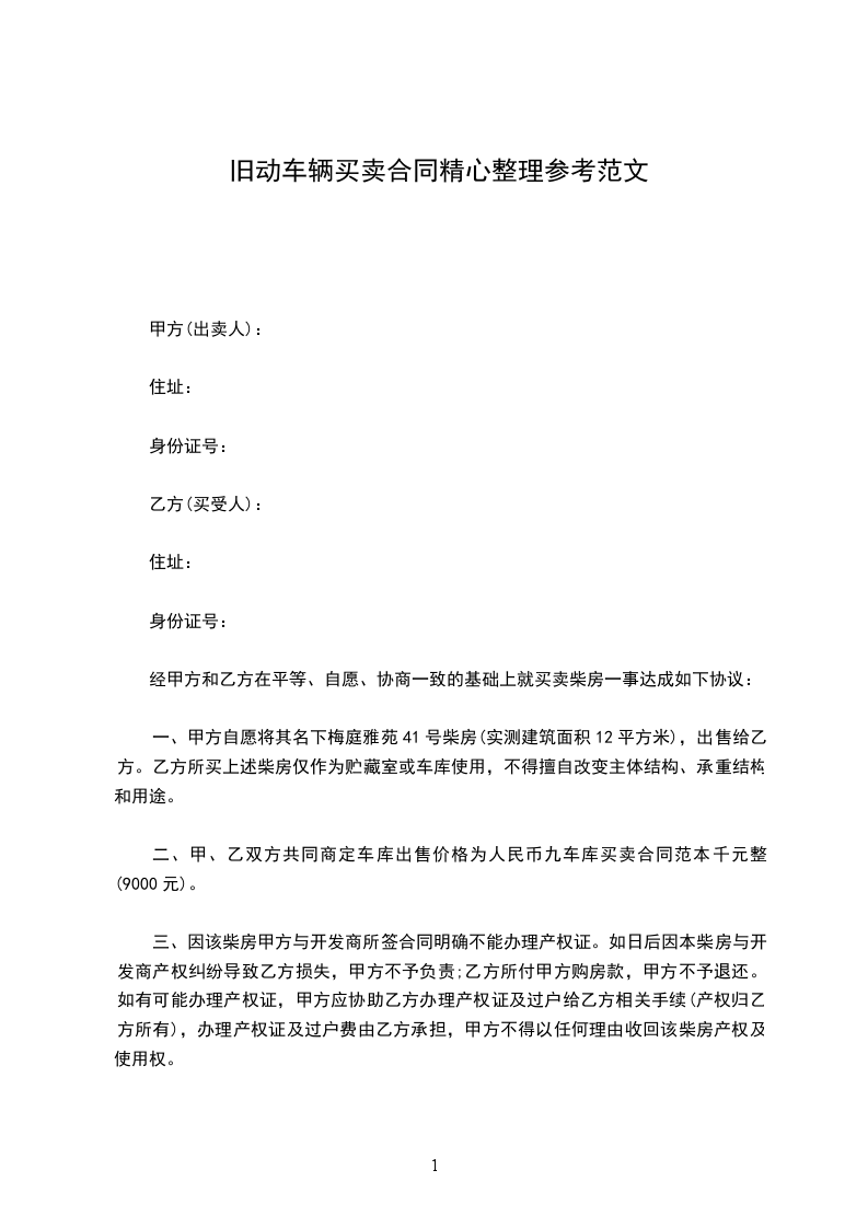 第一条:甲方购买乙方所有的机动车一辆: